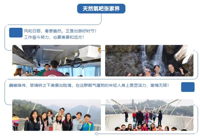 為了營造良好的企業氛圍,讓員工增強榮譽感、團體感,南京大展每年都會定期給員工創造一個開心放鬆的旅遊,我們在歡聚中出發張家界,在遊玩中互動。